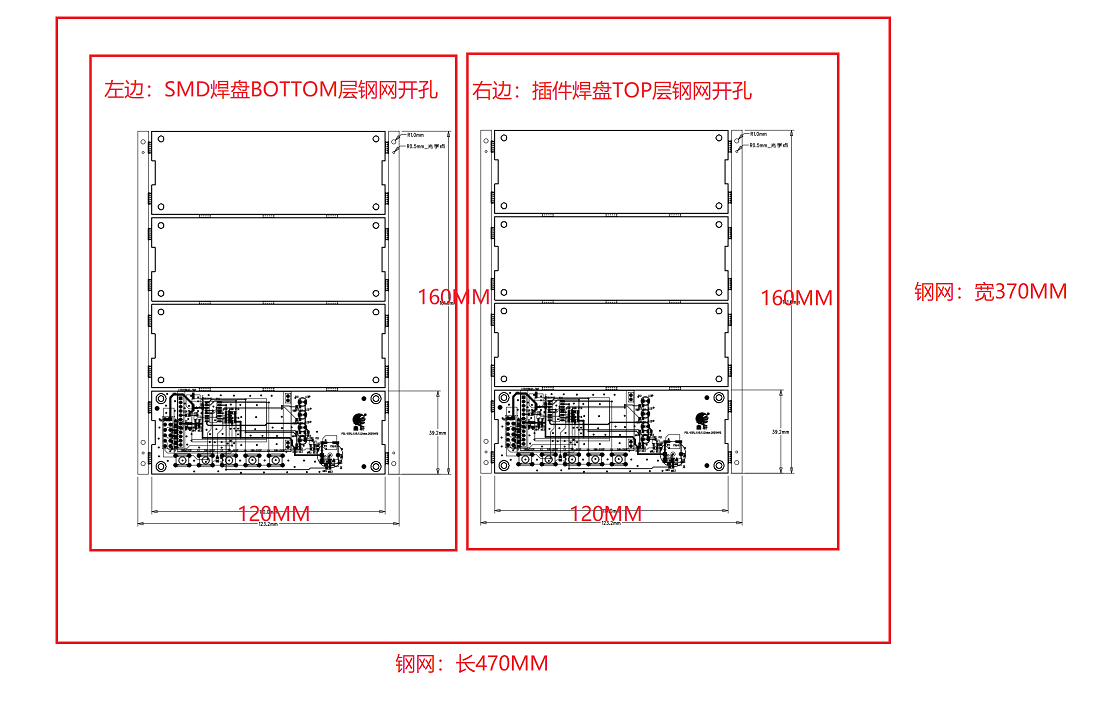 <p style=‘white-space: normal;’><img src=‘http://m.thbsqx.cn/uploadfiles/image/20210415/1618458973277087374.png’ title=‘1618458973277087374.png’ alt=‘image.png’/><br /><p style=‘white-space: normal;’><br/><br /><p style=‘white-space: normal;’>您好,我之前可能表達(dá)有誤。<br /><p style=‘white-space: normal;’>我的意思是,我提供一個(gè)已經(jīng)拼好板的4拼板的Gerber文件,? ? 給你們開(kāi)鋼網(wǎng)的時(shí)候,?幫我?在鋼網(wǎng)的?<br /><p style=‘white-space: normal;’>左邊開(kāi)4拼板的BOTTOM層的SMD焊盤(pán)孔,<br /><p style=‘white-space: normal;’>右邊開(kāi)4拼板的TOP層的插件焊盤(pán)孔。<br /><br/>
