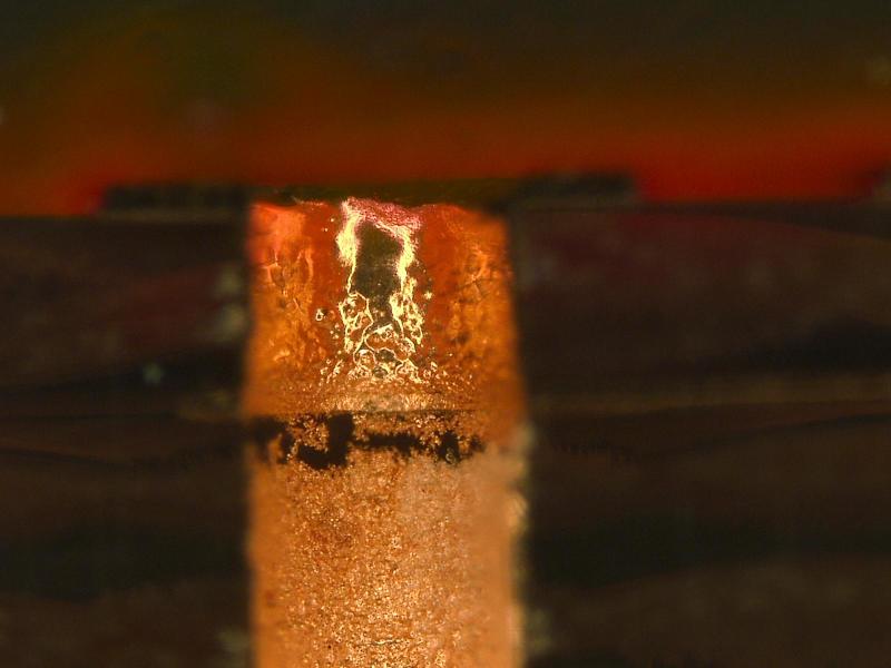 一:隱性壞孔:大家可能也碰到,收到PCB工廠的板子,個(gè)別板子在經(jīng)過(guò)SMT高溫之后就似通非通,時(shí)好時(shí)壞,這個(gè)時(shí)候大家要考慮一下“隱性壞孔”的可能,我們先來(lái)看一張“隱性壞孔”圖,看它長(zhǎng)的什么樣子,可不可怕,隱性壞孔剖面如圖: