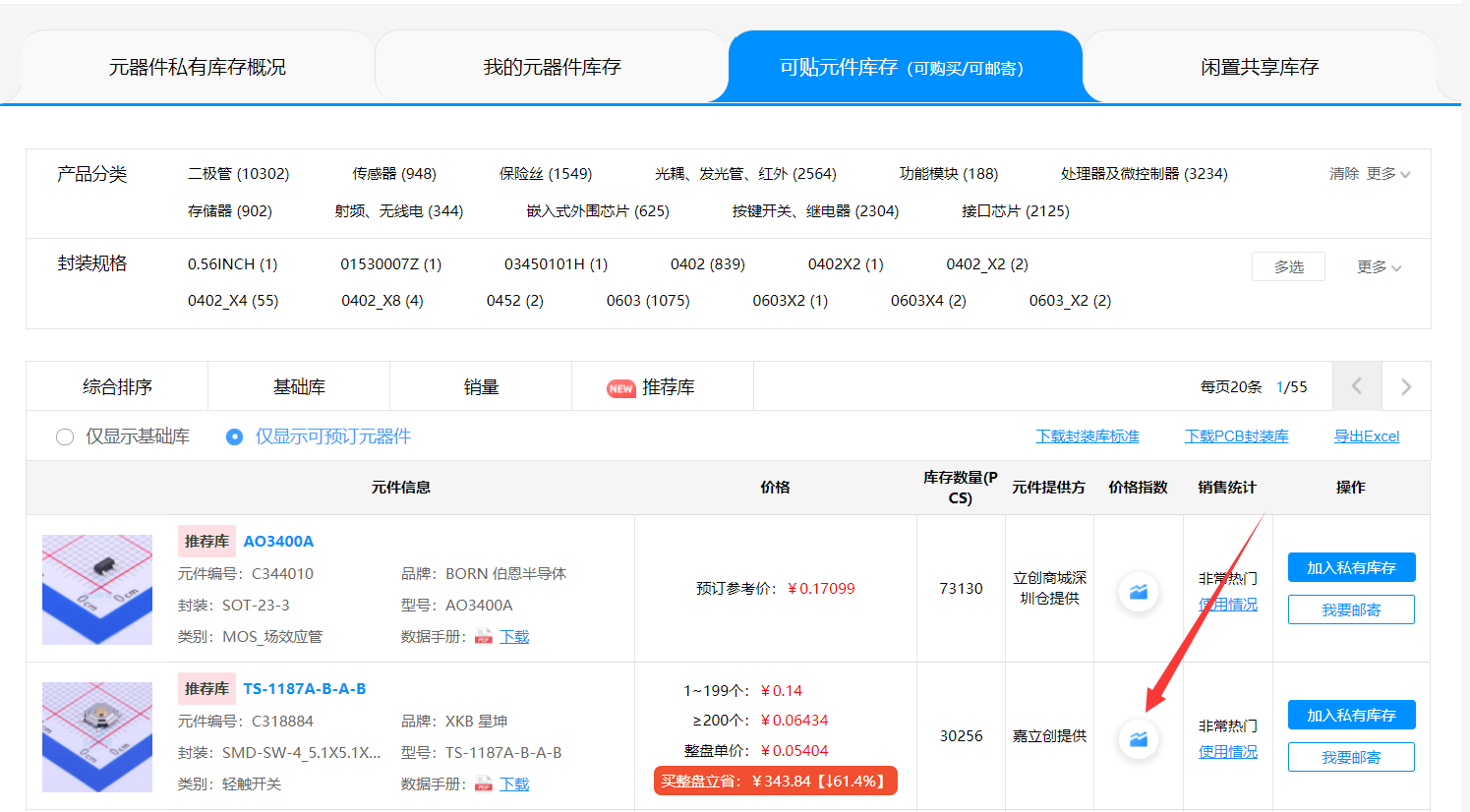 為了指導(dǎo)客戶更好的做好”整盤私有庫存?zhèn)湄洝?/span>,提供采購數(shù)據(jù)依據(jù),嘉立創(chuàng)SMT元器件上線“嘉立創(chuàng)價格指數(shù)” 以方便客戶