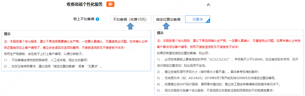 注意事項(xiàng):如果沒有選擇"在指定位置加客編",則不接受指定位置添加,哪怕是您的設(shè)計(jì)文件中有嘉立創(chuàng)的指定字符!