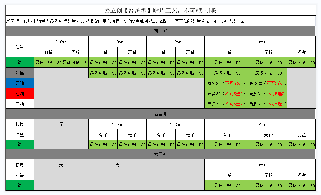 嘉立創(chuàng)可以接的PCB工藝,板厚在0.8和0.8MM以上,出貨尺寸在70*70MM(含)以上的都可以接貼片。