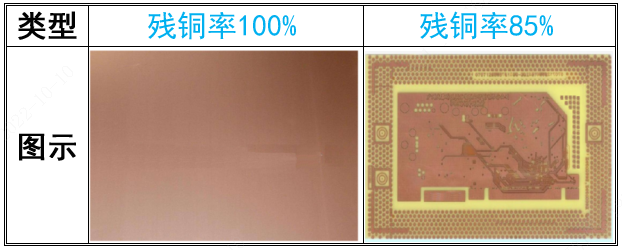 殘銅率:指內(nèi)層線路圖形所占整個(gè)板面的百分比。殘銅率=當(dāng)前層有銅的面積/板子的總面積