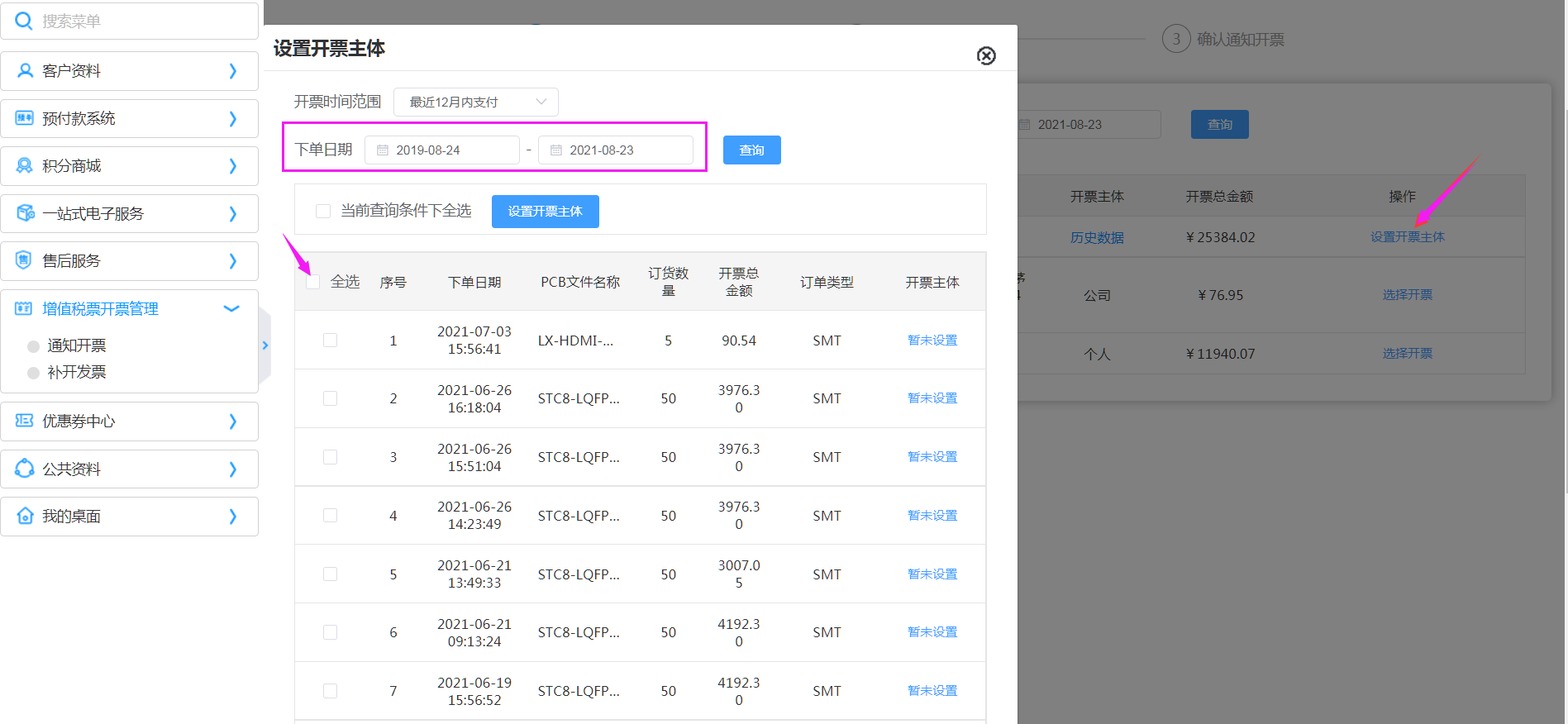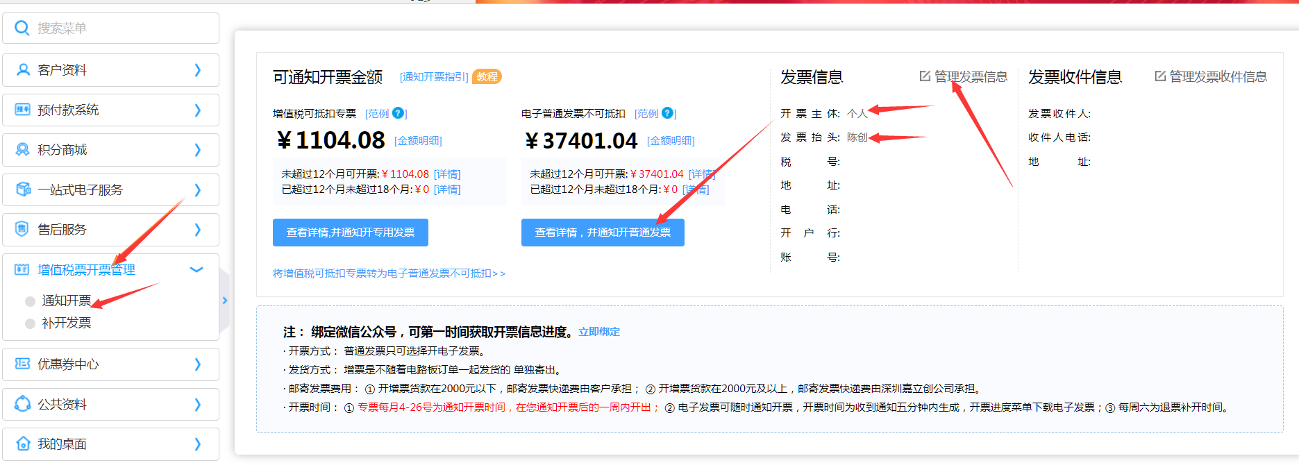 通知開(kāi)票方式一:累計(jì)訂單全部全部開(kāi)票【通知開(kāi)票】