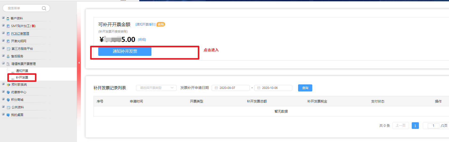 對于下單的時候沒有選擇發(fā)票,但是后續(xù)需要發(fā)票,如何辦? 嘉立創(chuàng)提供“補(bǔ)開發(fā)票”功能,操作如下圖:
