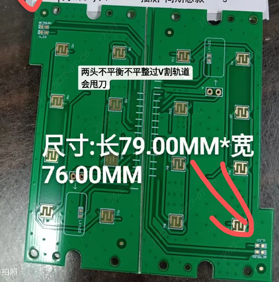 另外,需要留意,對(duì)于兩邊不是相對(duì)稱平齊的,在V割時(shí)卡不穩(wěn),加工時(shí)會(huì)V割歪的。