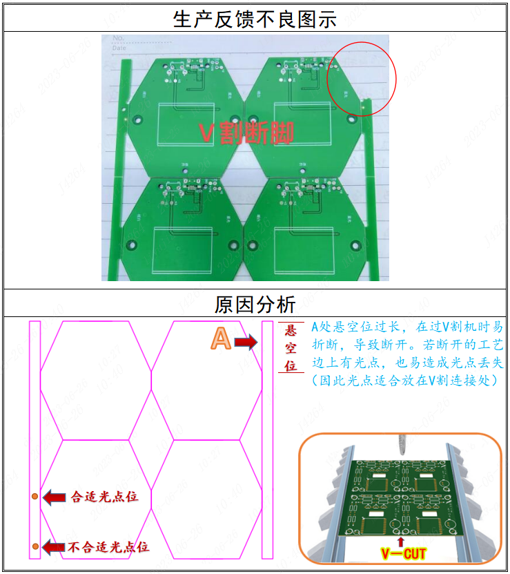 - 設(shè)計優(yōu)化:V割板邊懸空位過長易斷