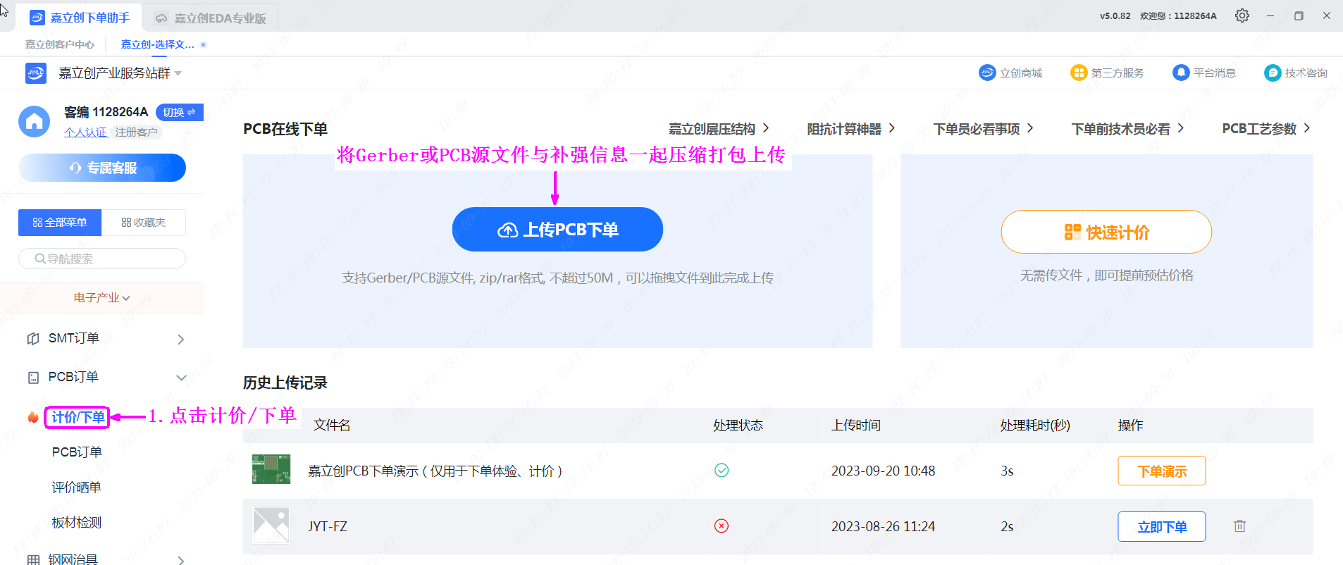 2.在左側(cè)點擊【計價/下單】上傳文件