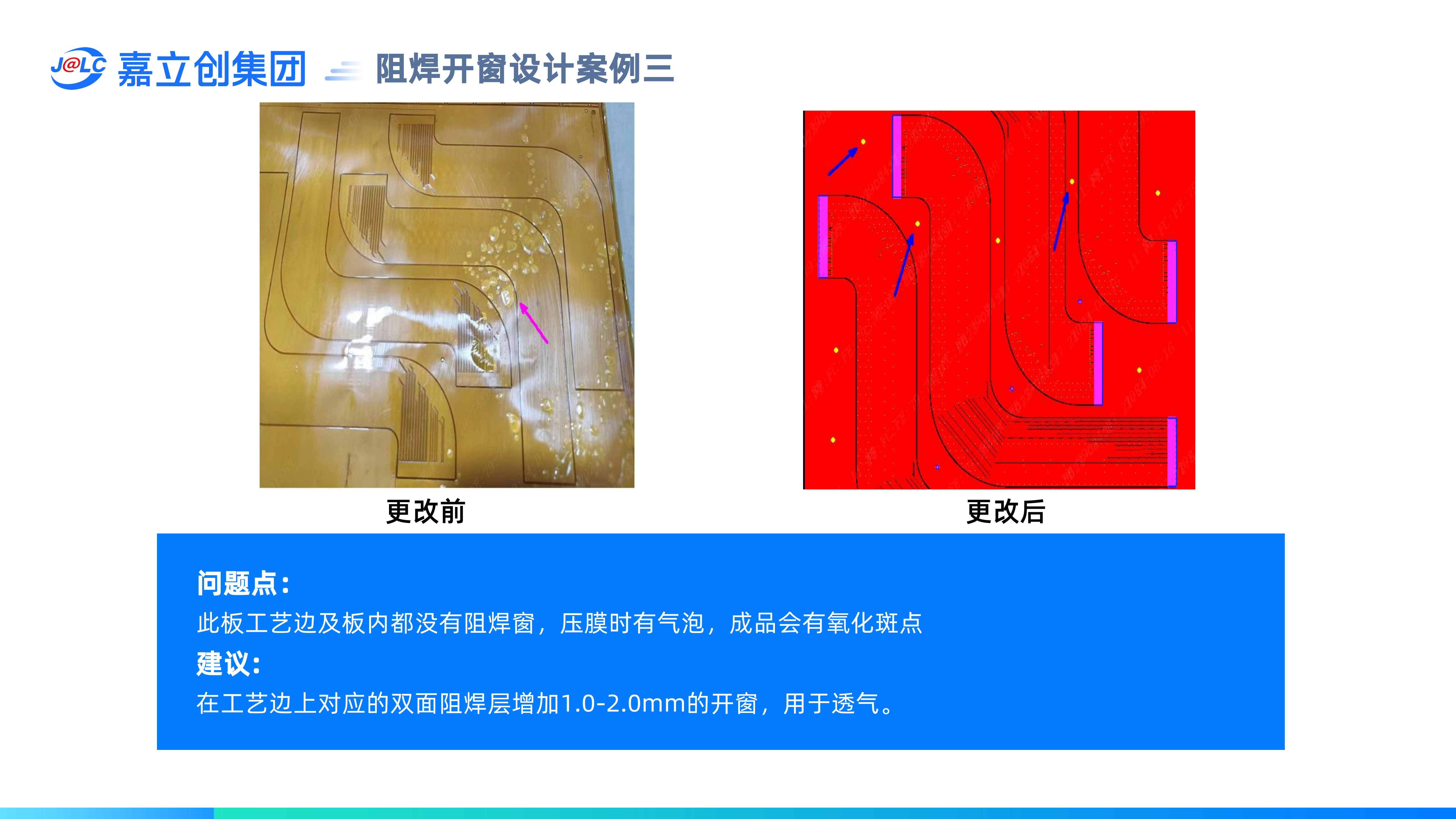 - 設(shè)計(jì)優(yōu)化:避免噴錫爆孔宜做沉金