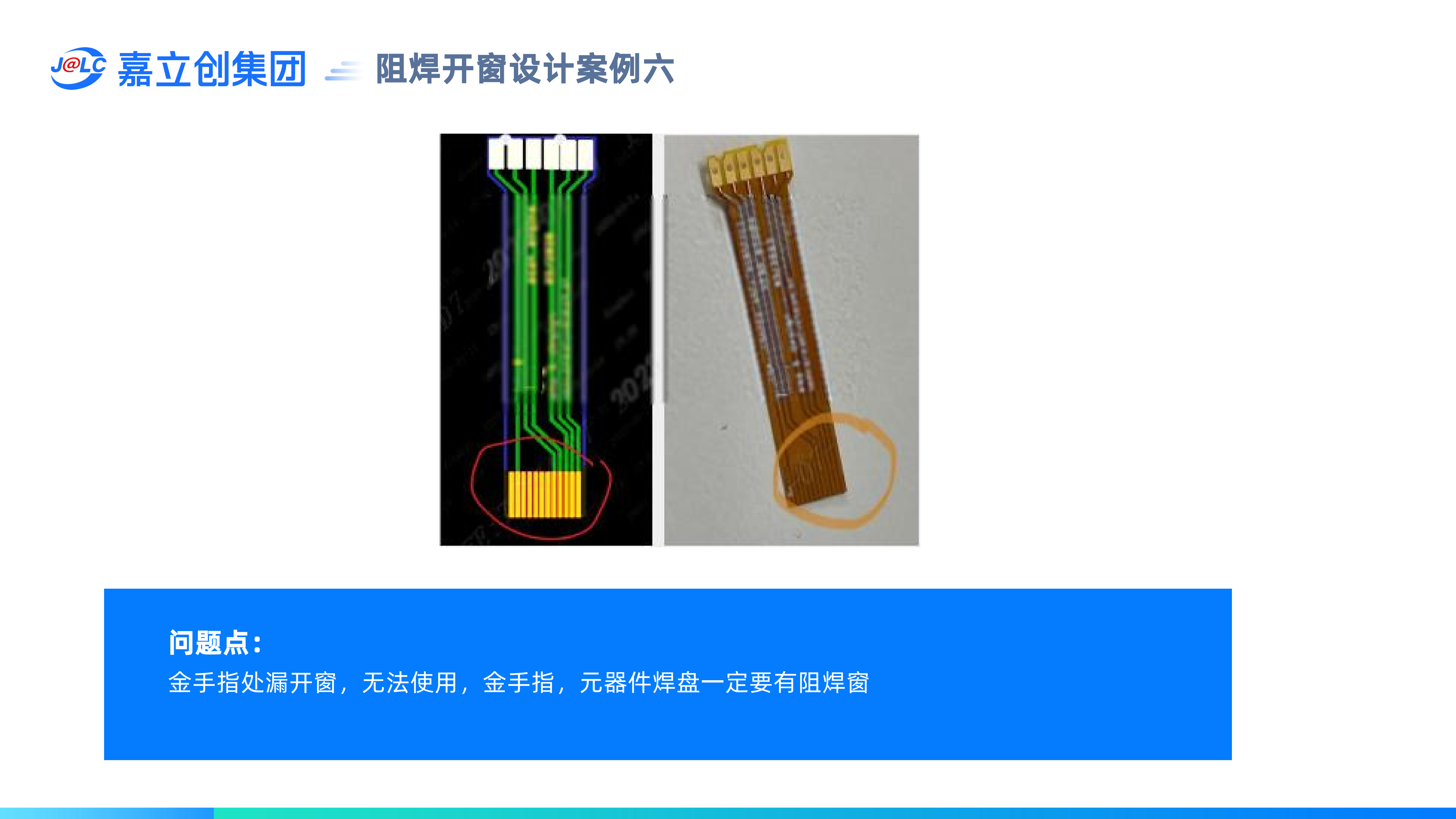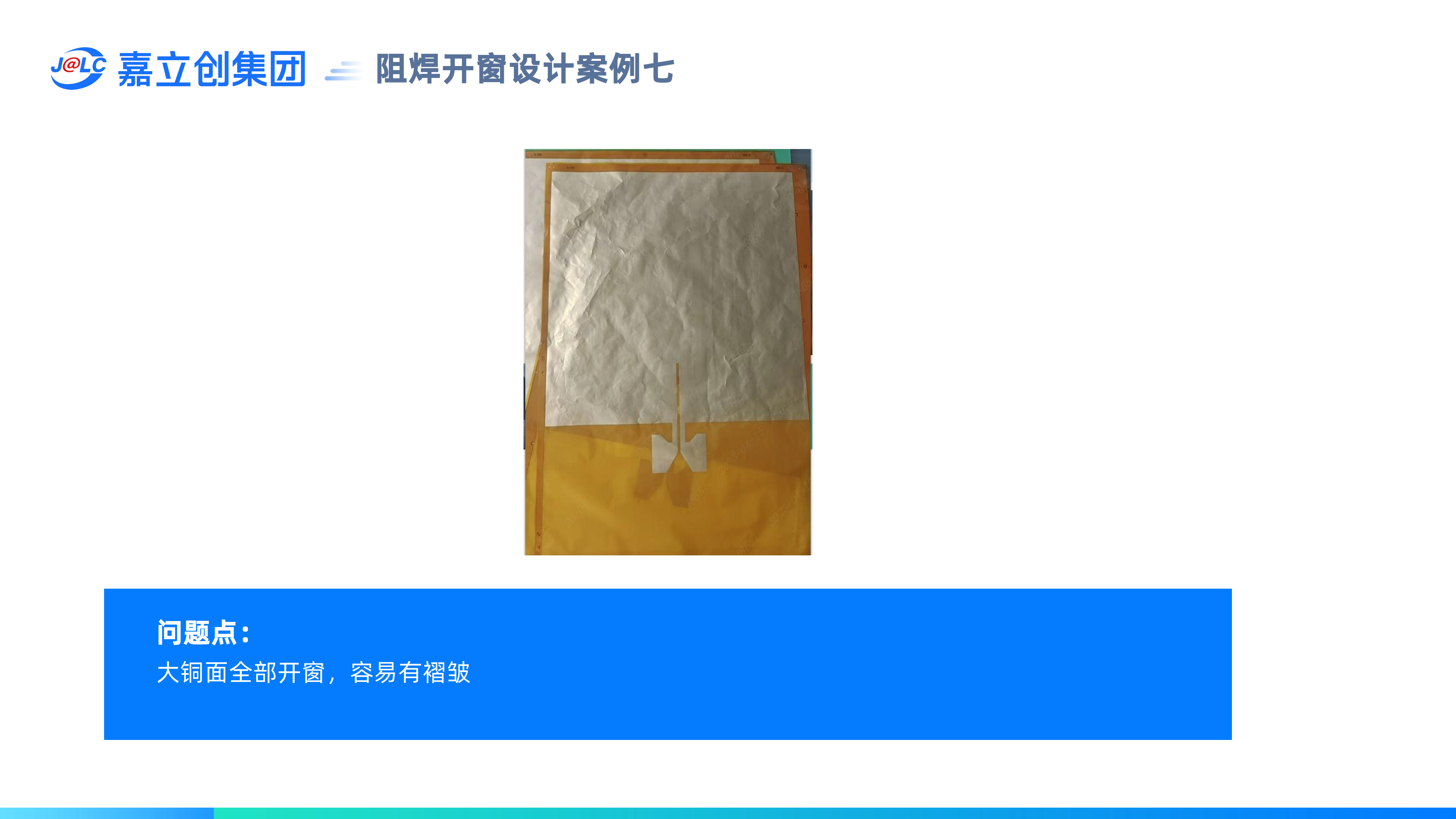 5.金手指,元器件焊盤一定要有阻焊窗,大面積開窗會(huì)有皺折問題。